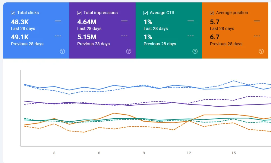 This example also shows why ranking position matters. Pages that rank higher usually receive more visibility and, therefore, more clicks. However, strong titles and alignment of intent can still improve performance even without ranking changes.