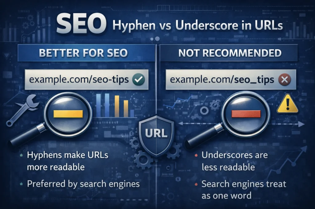 - Using hyphens instead of underscores keeps URLs readable and supports consistent interpretation across search systems.